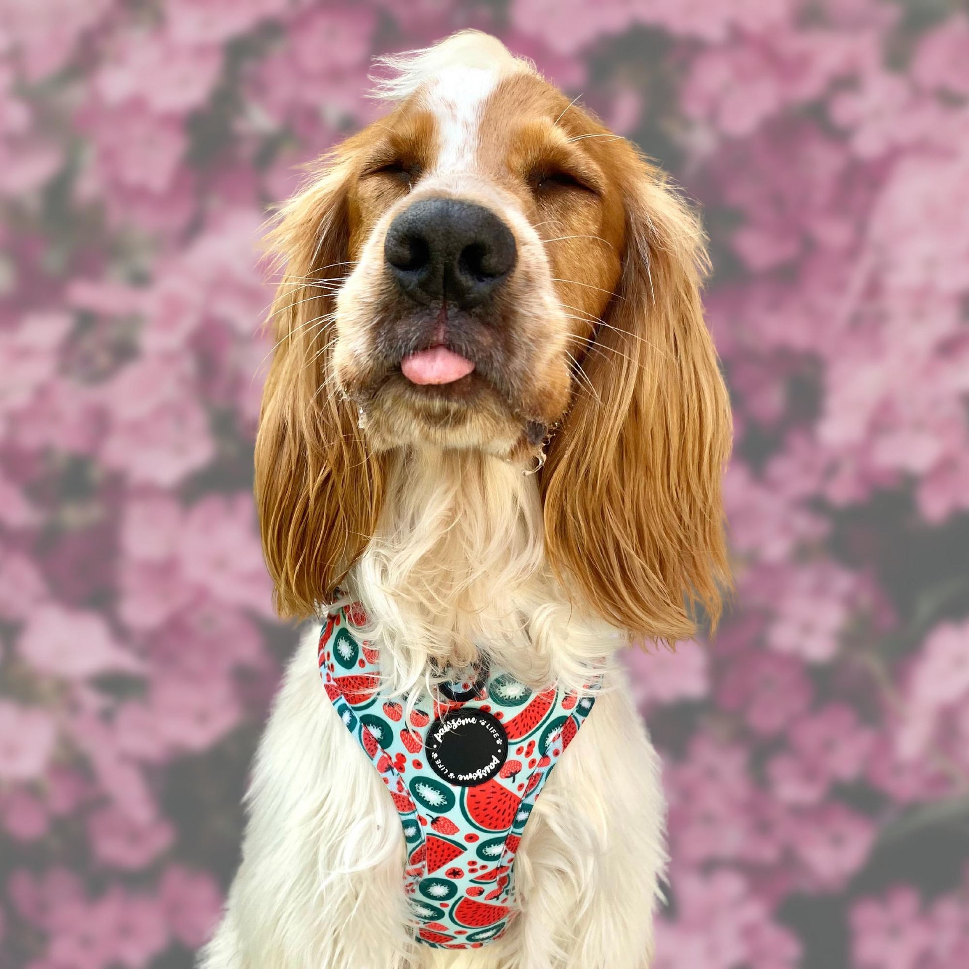 Introducing the best in our collection - the fabulous Designer Dog Harness in an irresistible Watermelon Print. This well-designed harness, a mix of practical and stylish, is the ideal