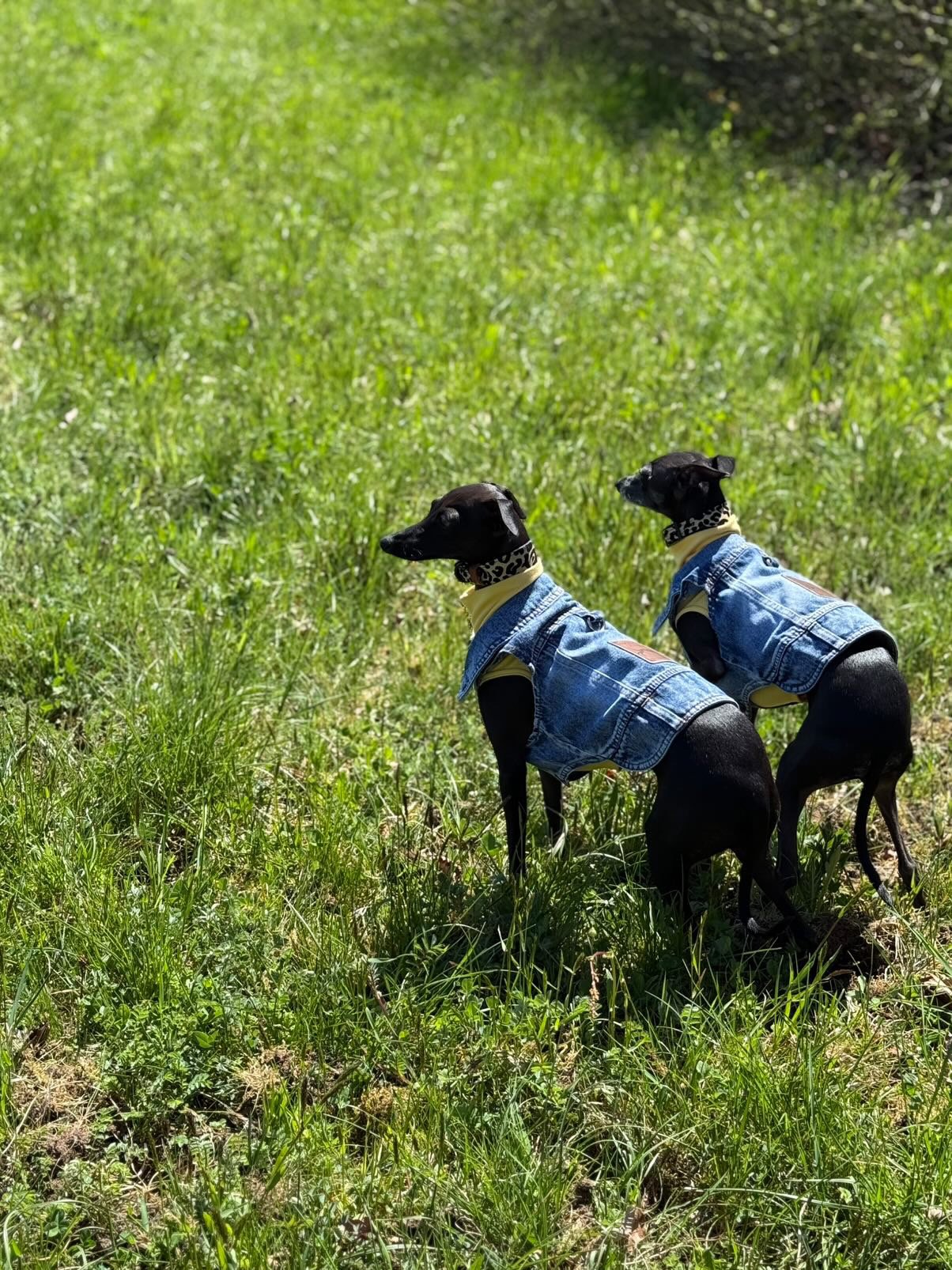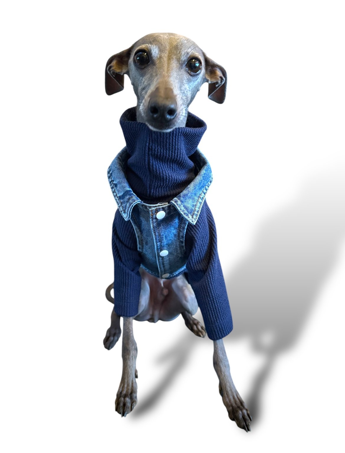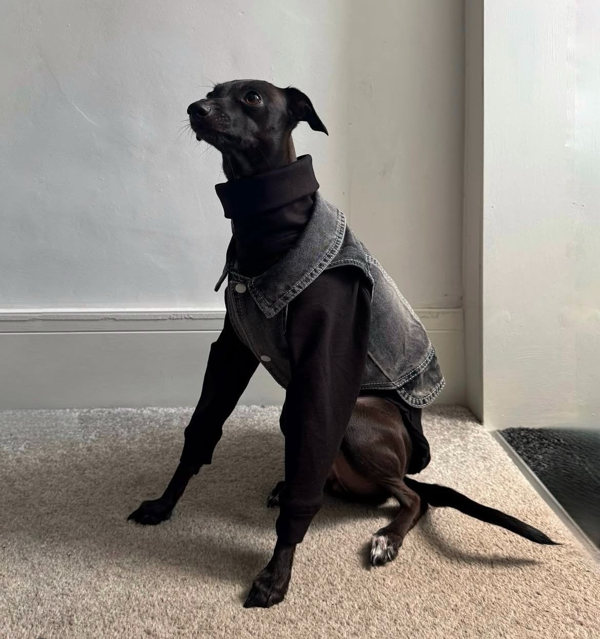 Black or blue washed denim jackets for dogs who like to ooze a bit of style, finished with the Cool Iggy Club patch designed and laser engraved by us here in London.