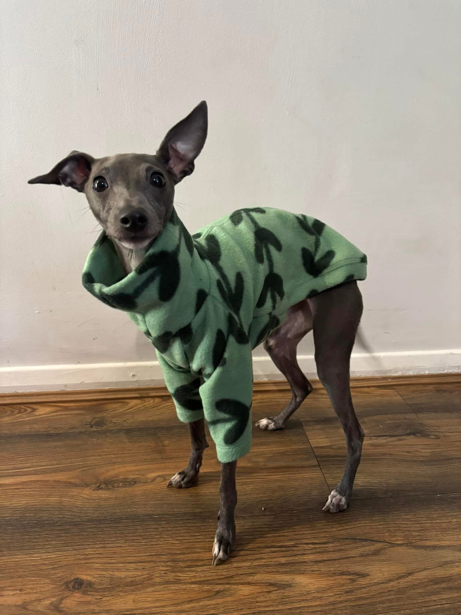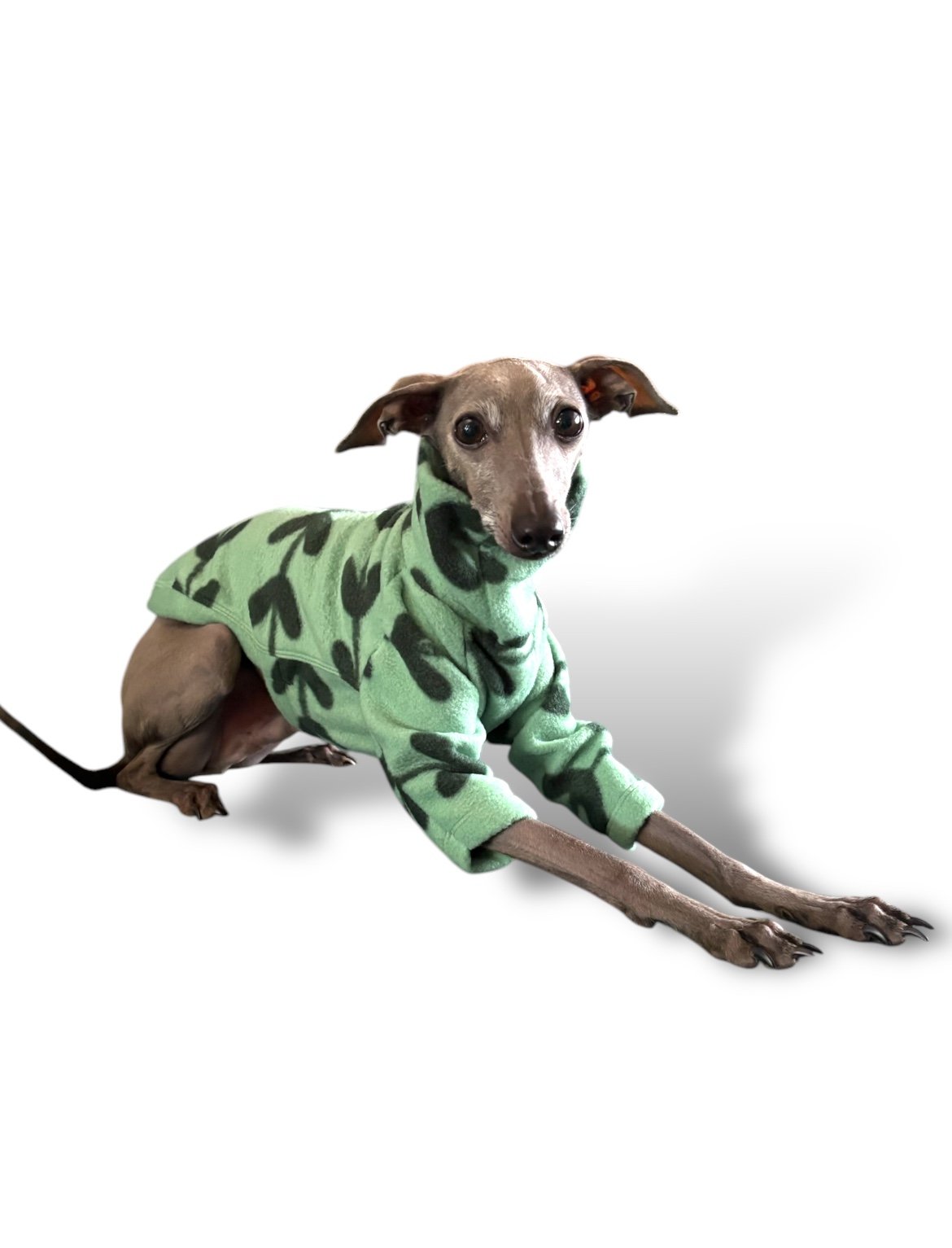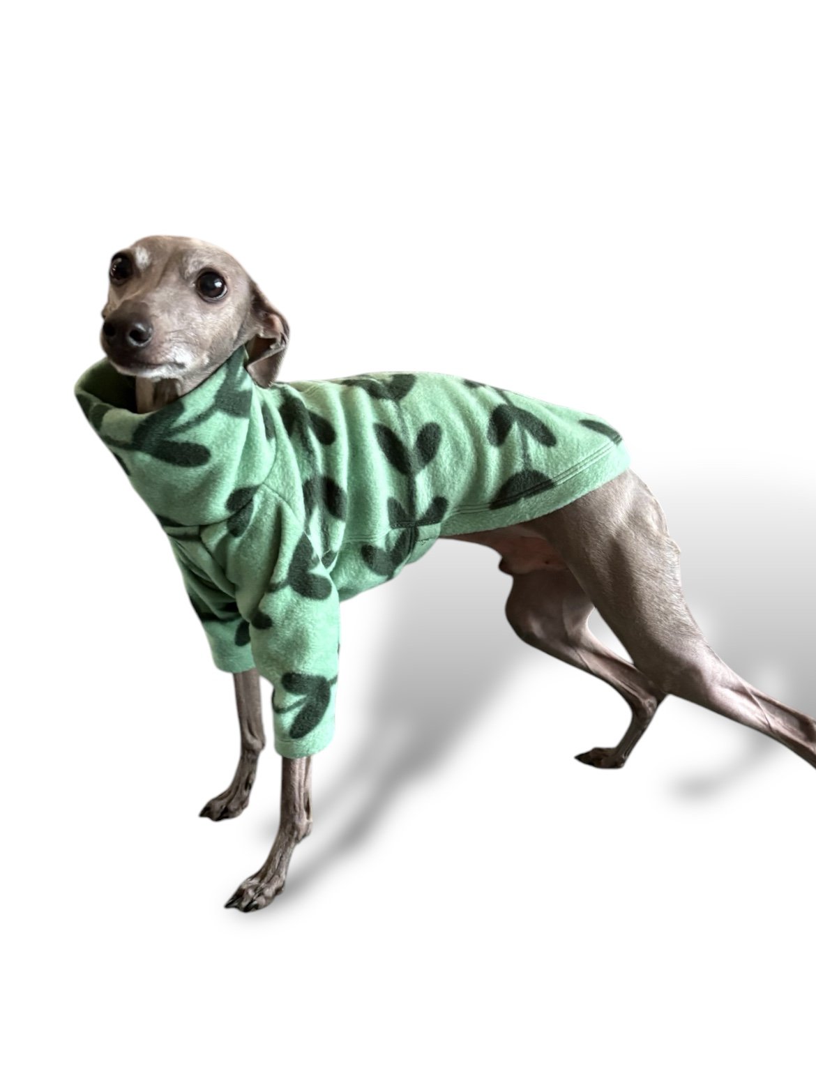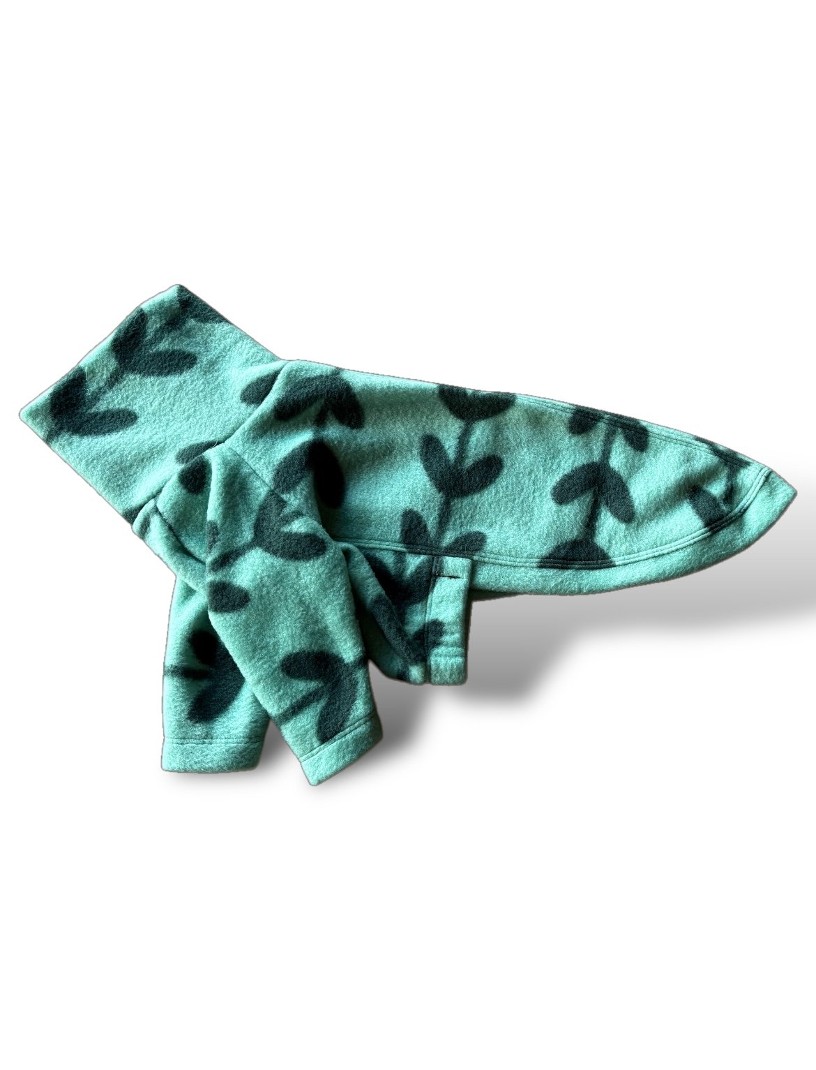 Our IggySuitsLondon green vines fleece jumper with 2 legs.