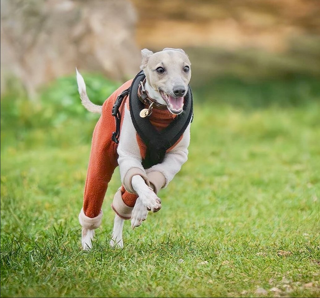 The design offers full-body coverage with long sleeves that protect their legs without restricting movement. The high neckline and ribbed cuffs add extra warmth around the neck and limbs and ensures your dog stays comfortable during walks or lounging at home.