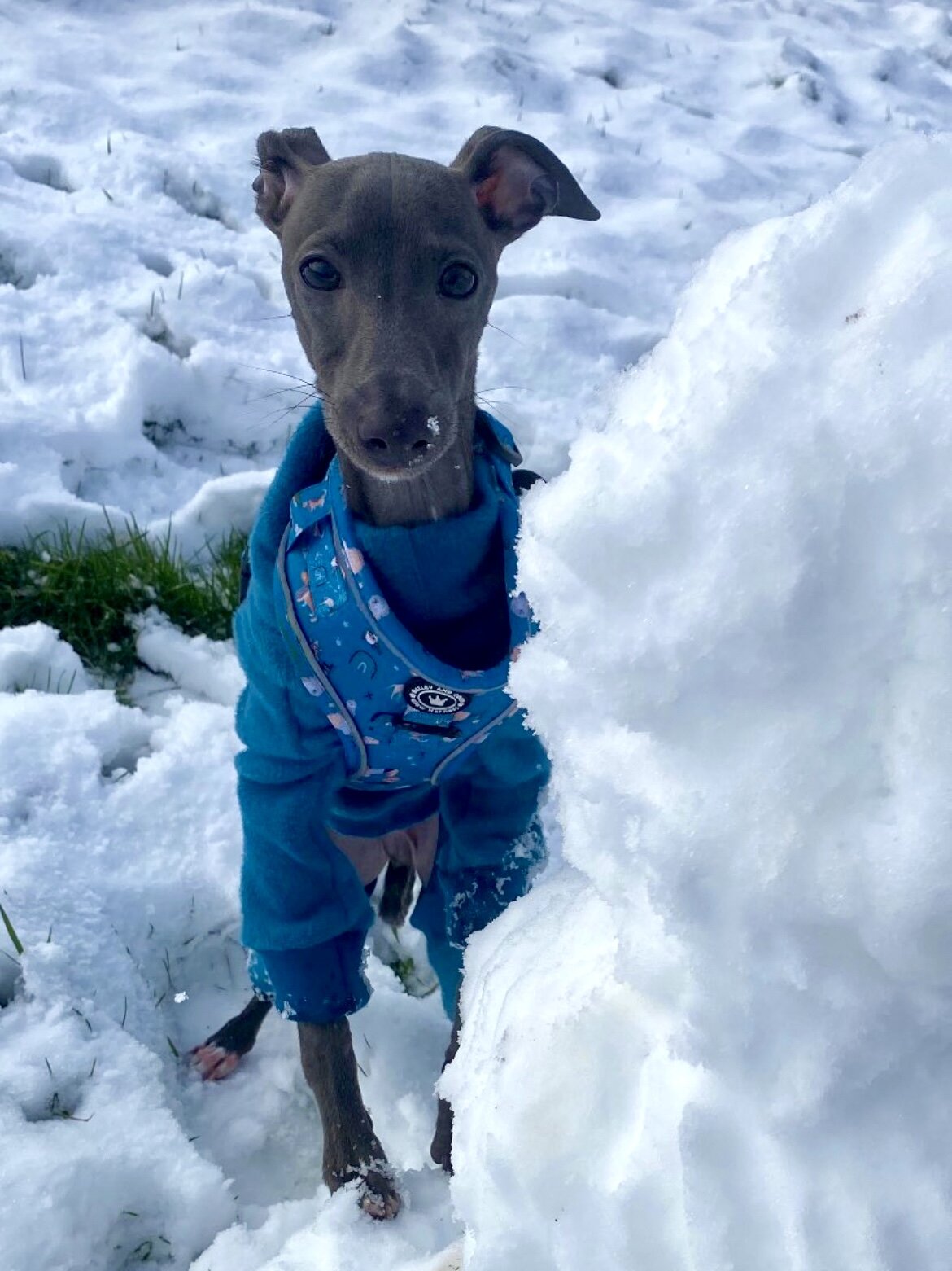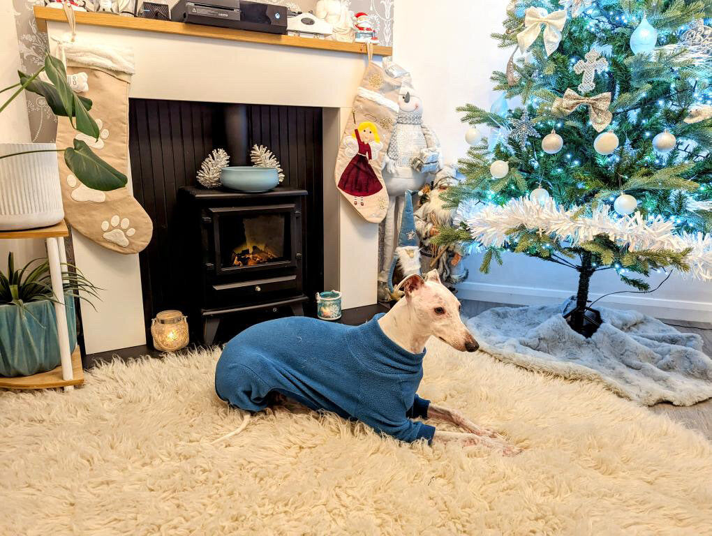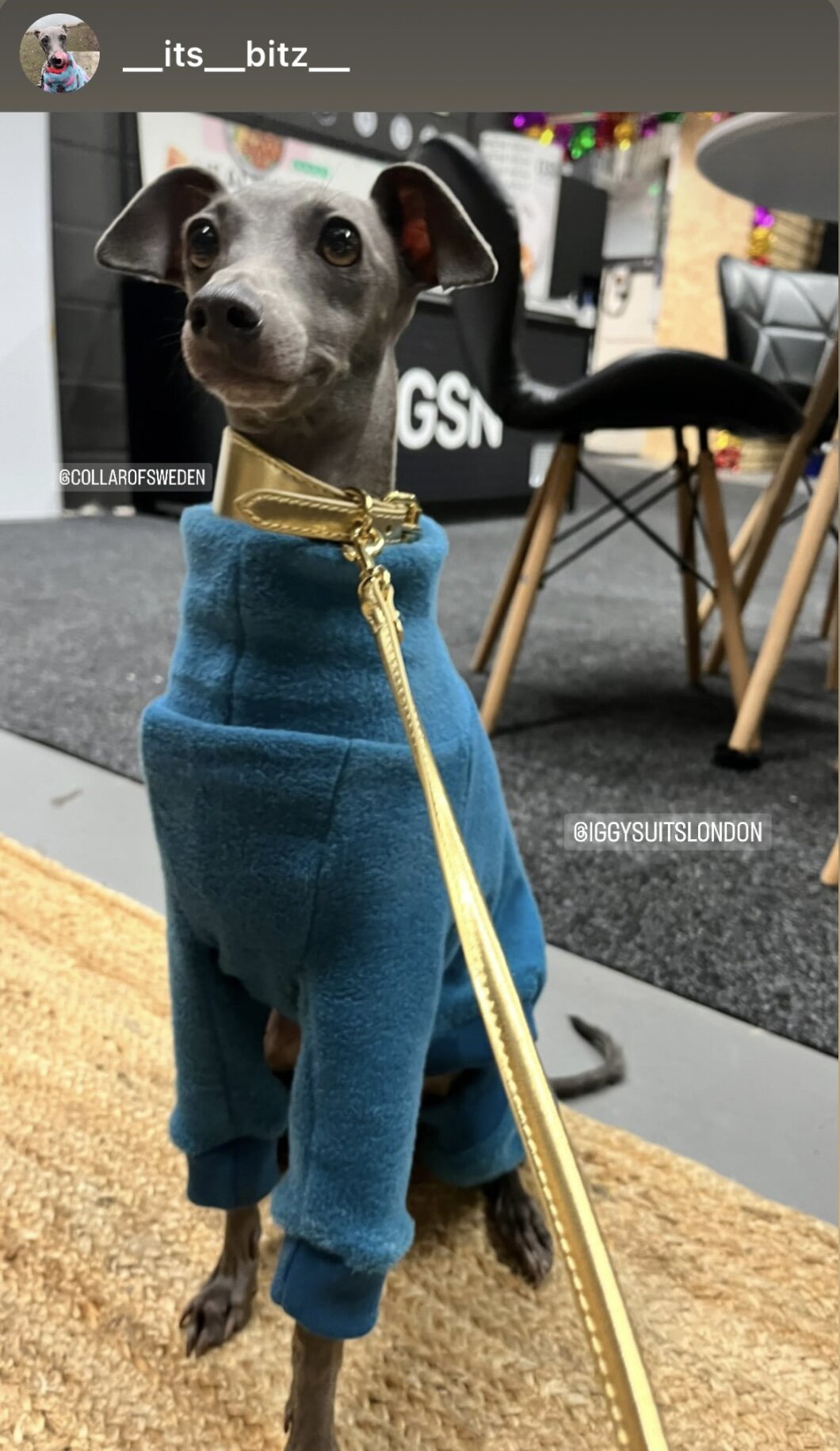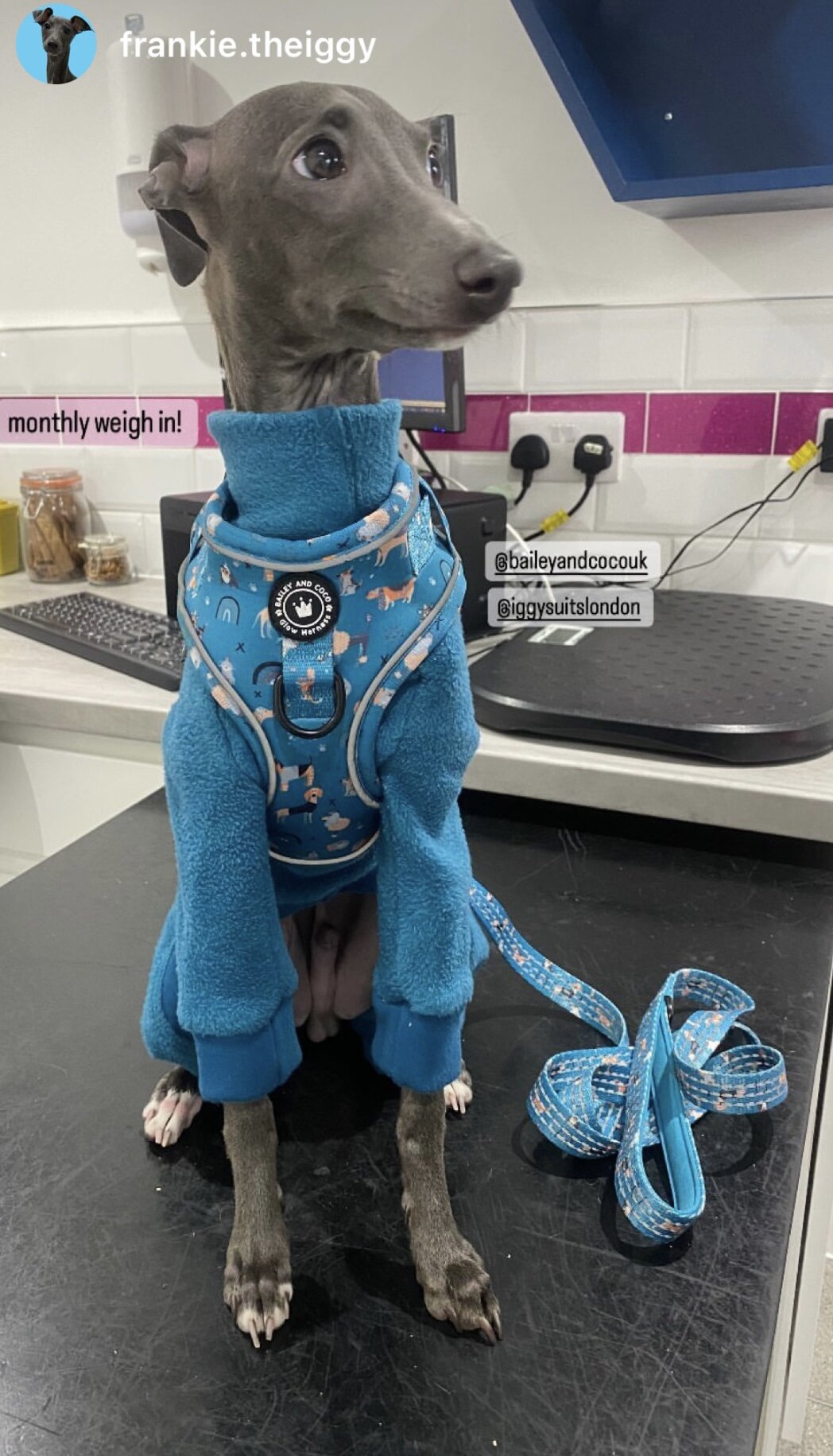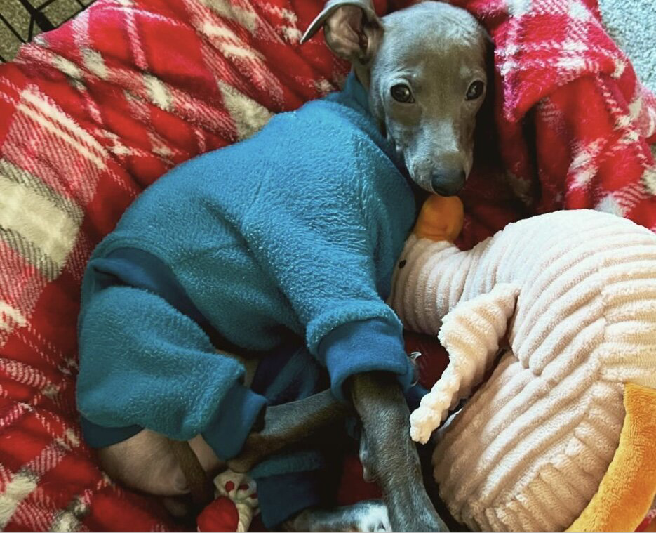 Made from soft and stretchy teal sweatshirt material on the inner which is lined with soft furry fleece on the outer (otherwise known as alpine fleece). A thick, warm and cosy addition to your hounds wardrobe this winter.