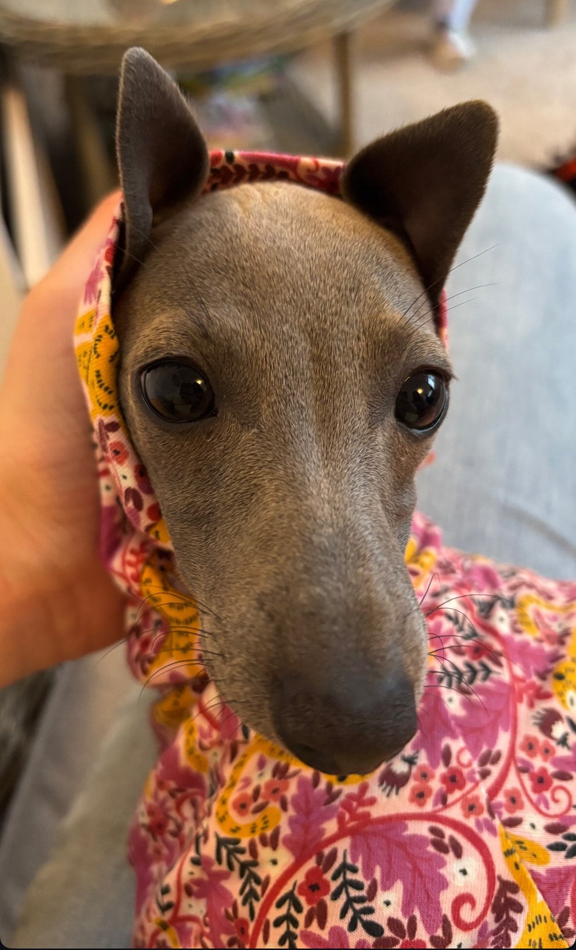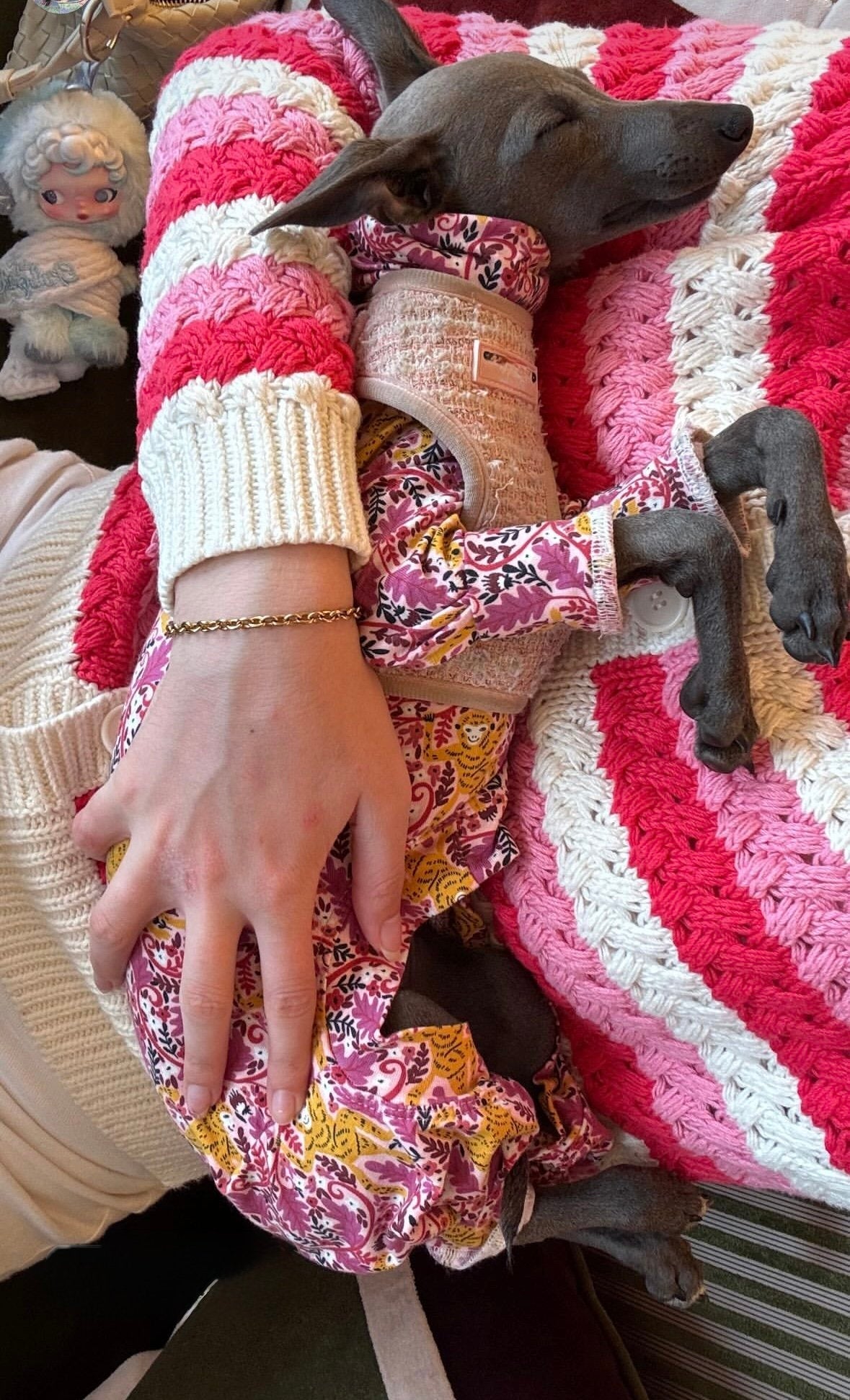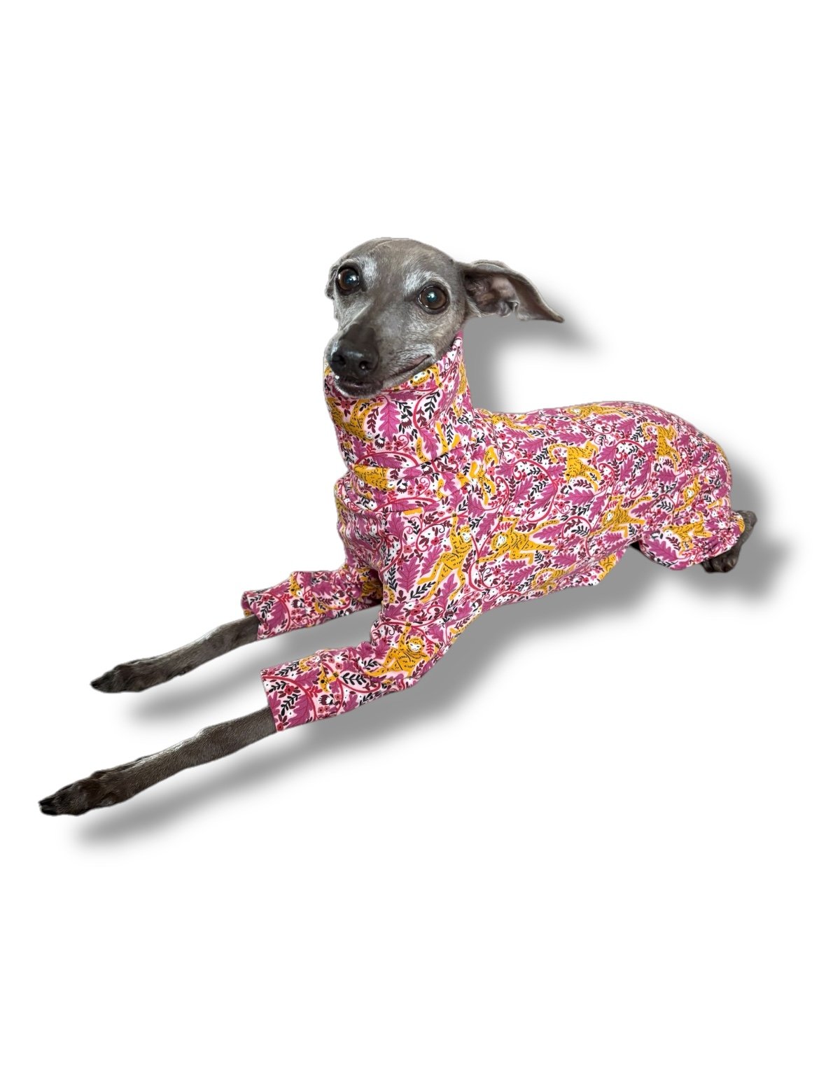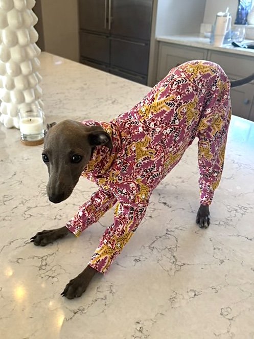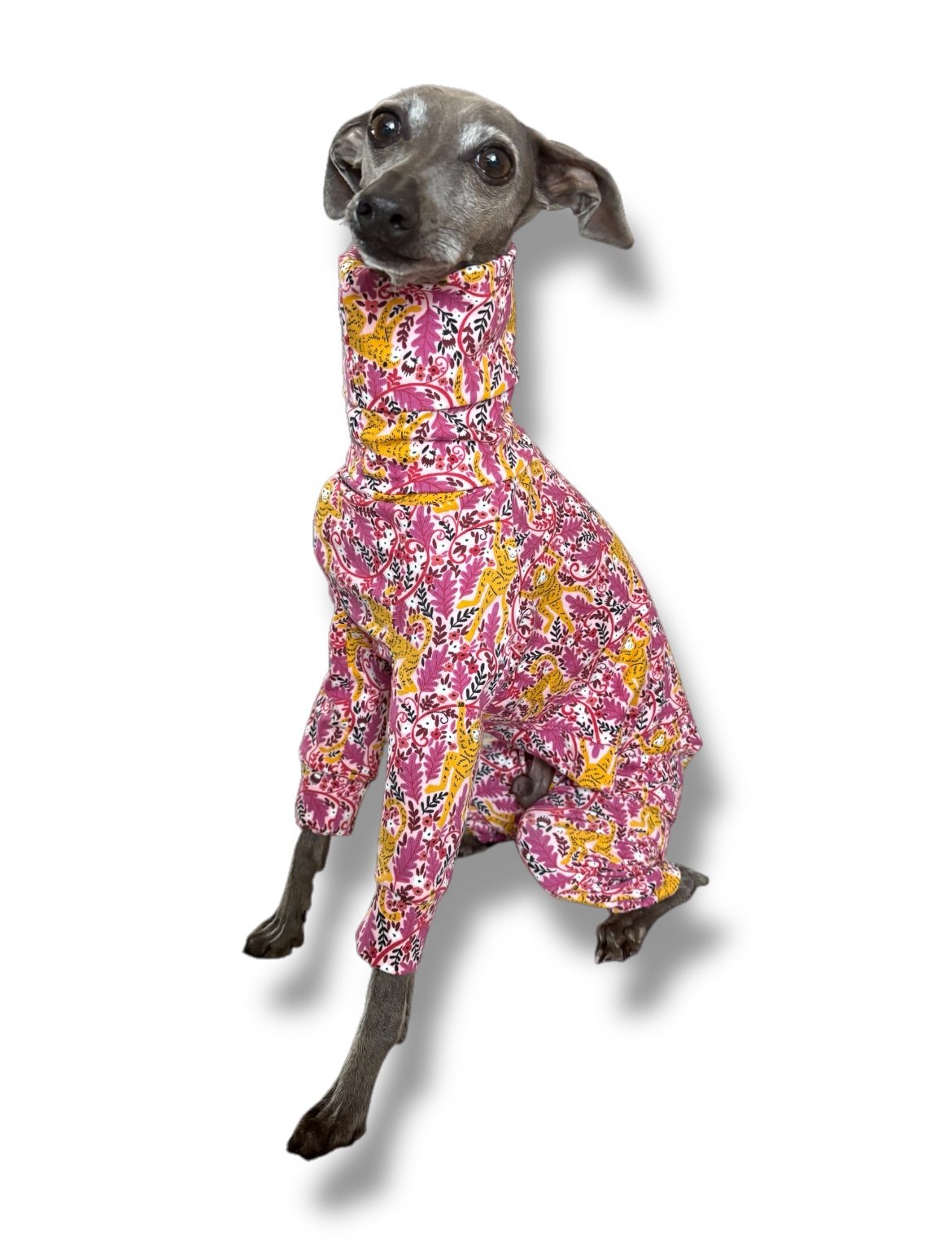 This cotton jersey fabric is so fun, I couldn't resist turning it into little suits for your dogs to run about in.