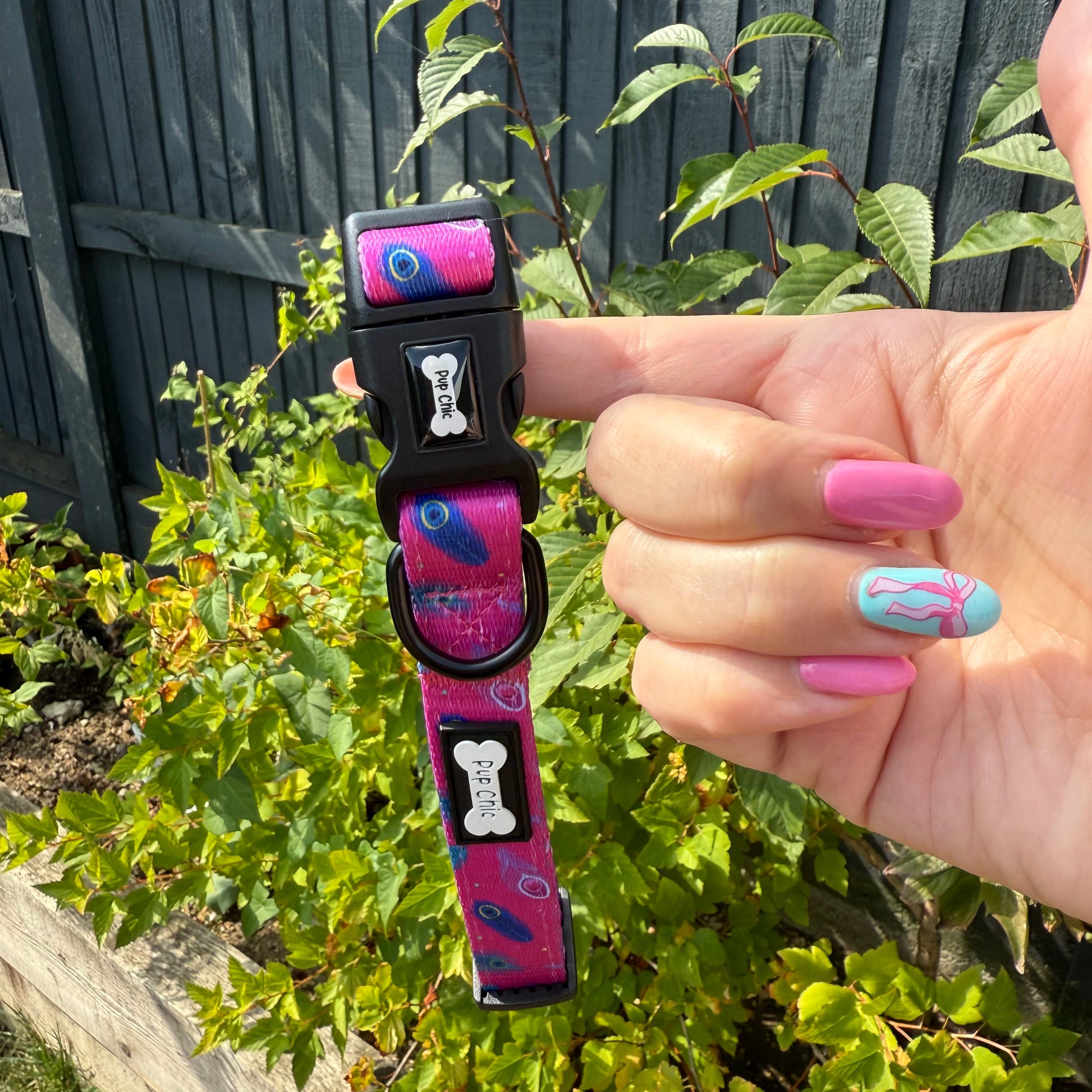 Whether you're out for a walk or playing in the park, the Peacock Power dog collar is the ideal blend of functionality and fashion for your four-legged companion. Shop now and give your dog the style they deserve!