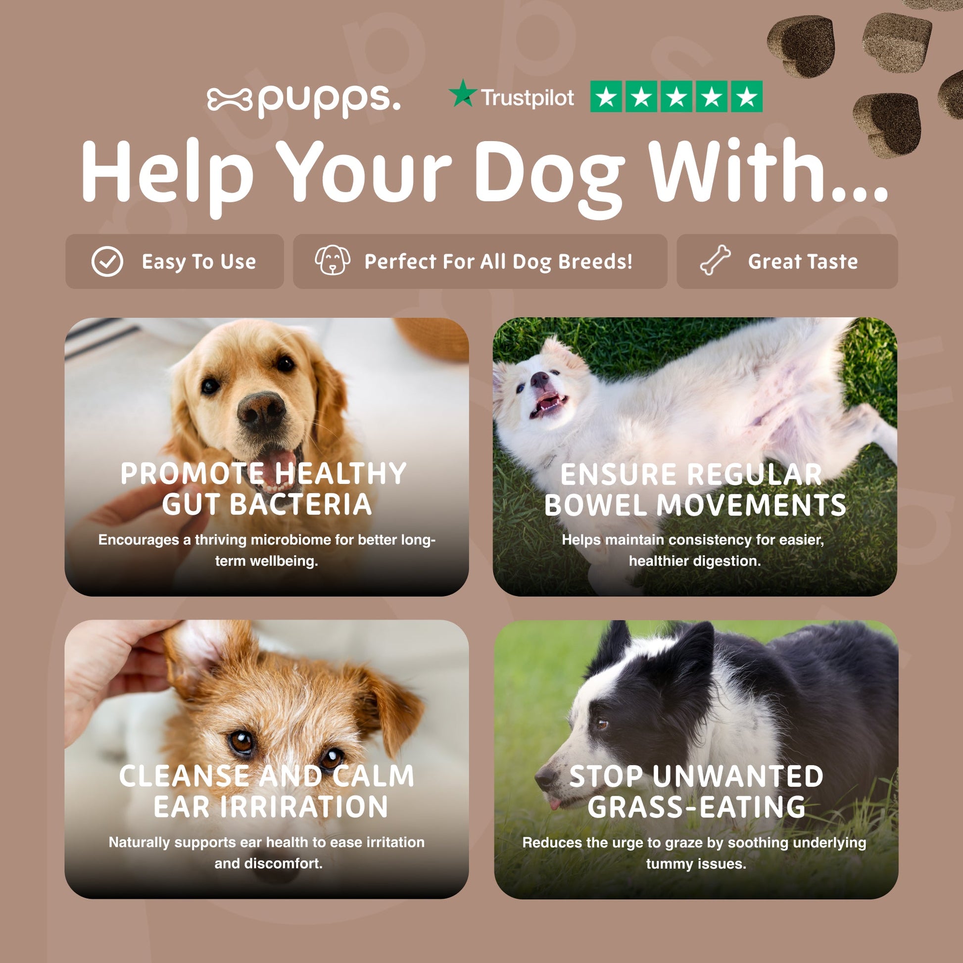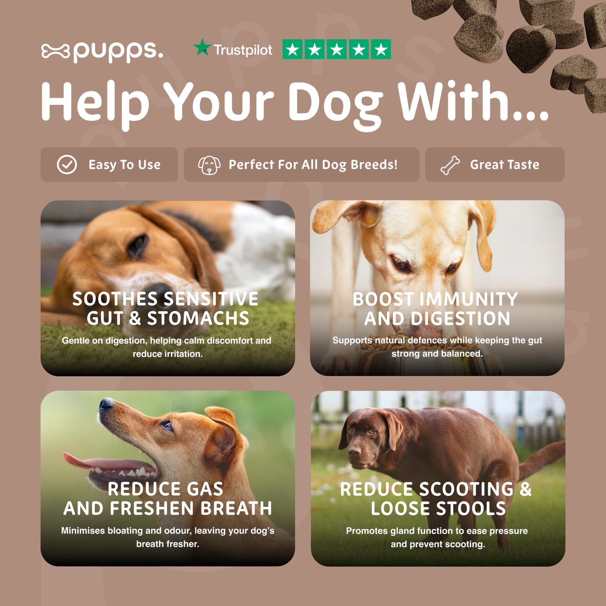 Support your dog's digestive health with Pupps Pre & Probiotic Dog Treats. These treats contain a blend of prebiotics and probiotics to promote healthy gut flora, improve digestion, and enhance nutrient absorption. Ideal for dogs with sensitive stomachs.