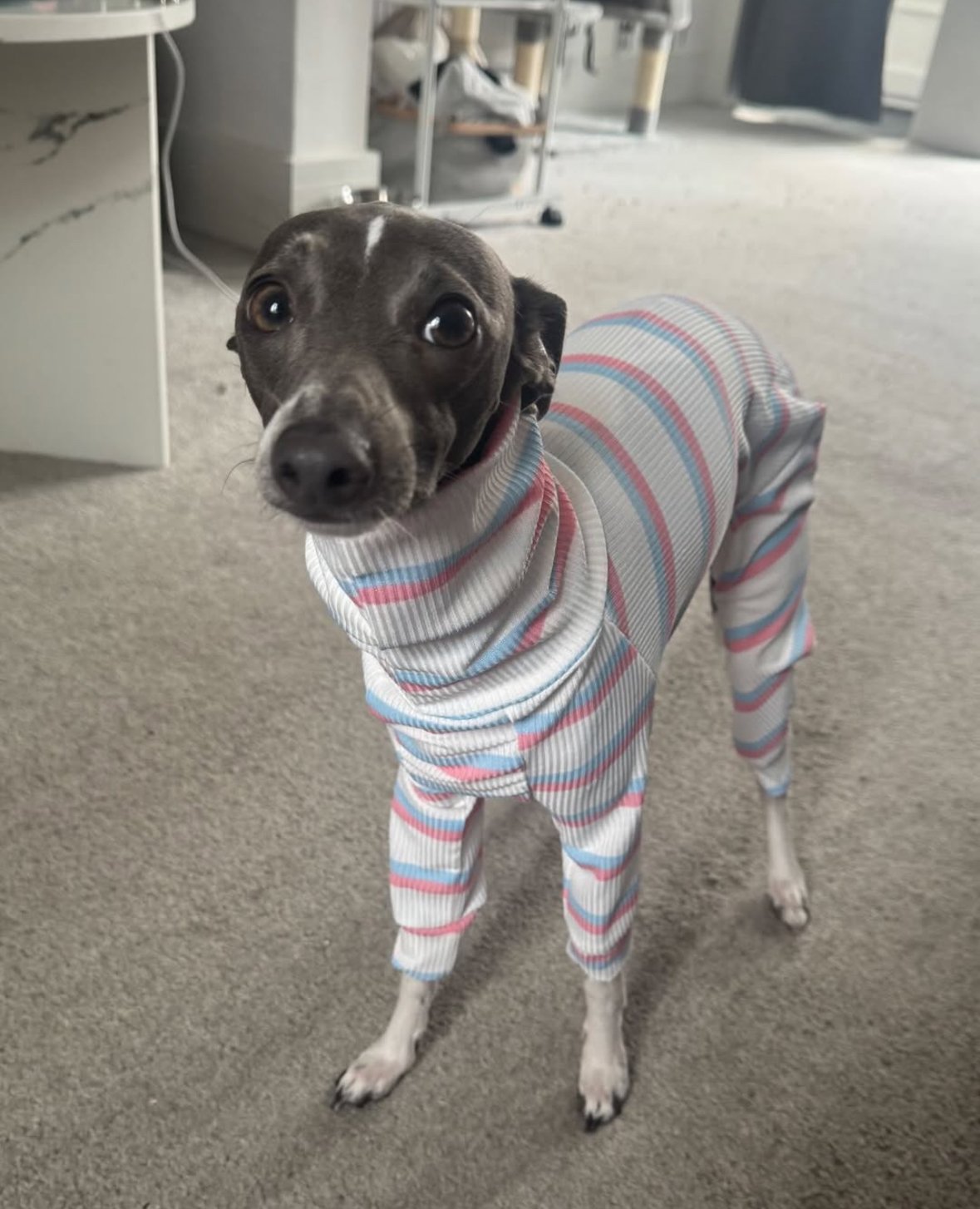 The four-legged design is tailored to fit their slim, athletic frame while allowing for plenty of movement due to the stretch of the fabric.